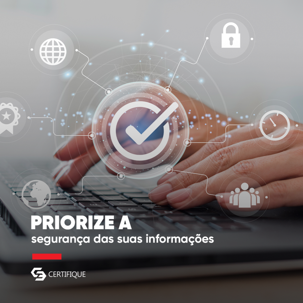 Invista no Certificado Digital e mostre que a segurança das suas informações é prioridade. Com ele, você pode assinar documentos digitais, acessar serviços públicos e privados e muito mais, sempre com a garantia de estar protegido.